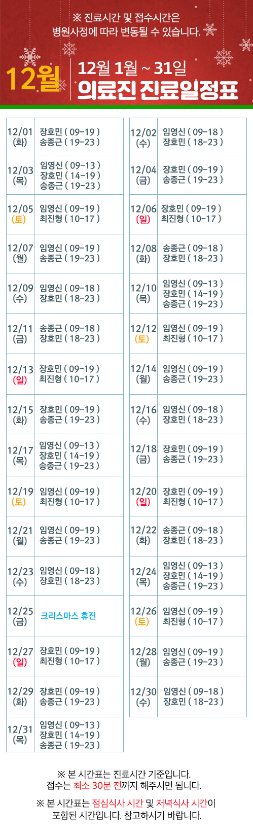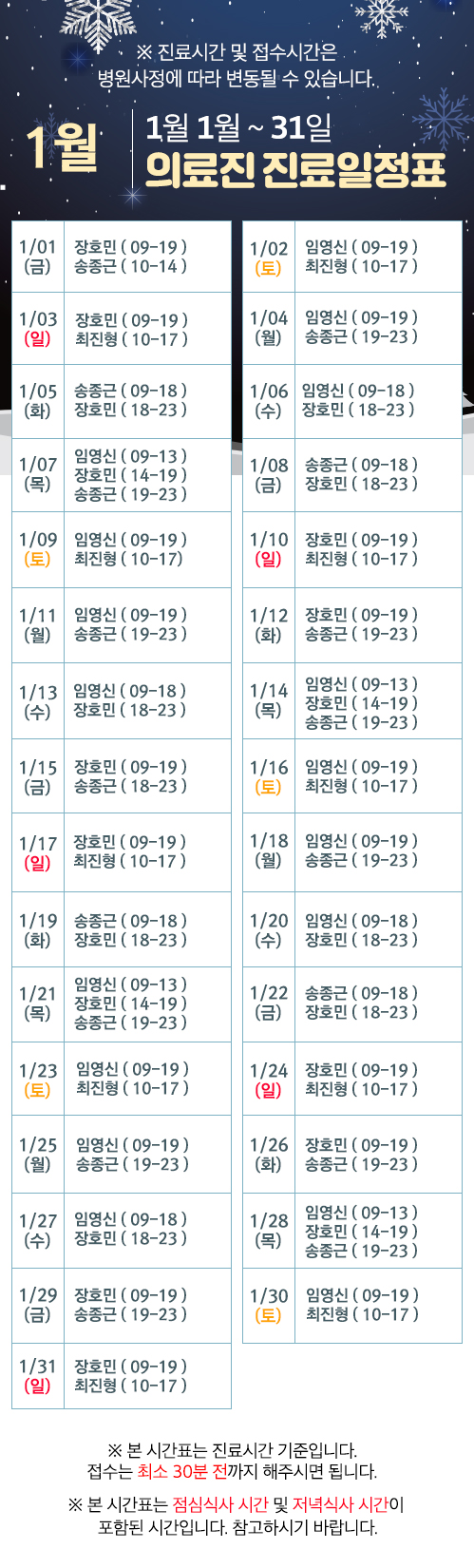 ※ 진료 의사 및 진료 시간은 병원사정에 따라 변동될 수 있습니다.