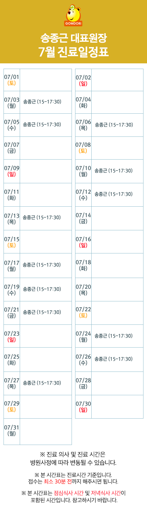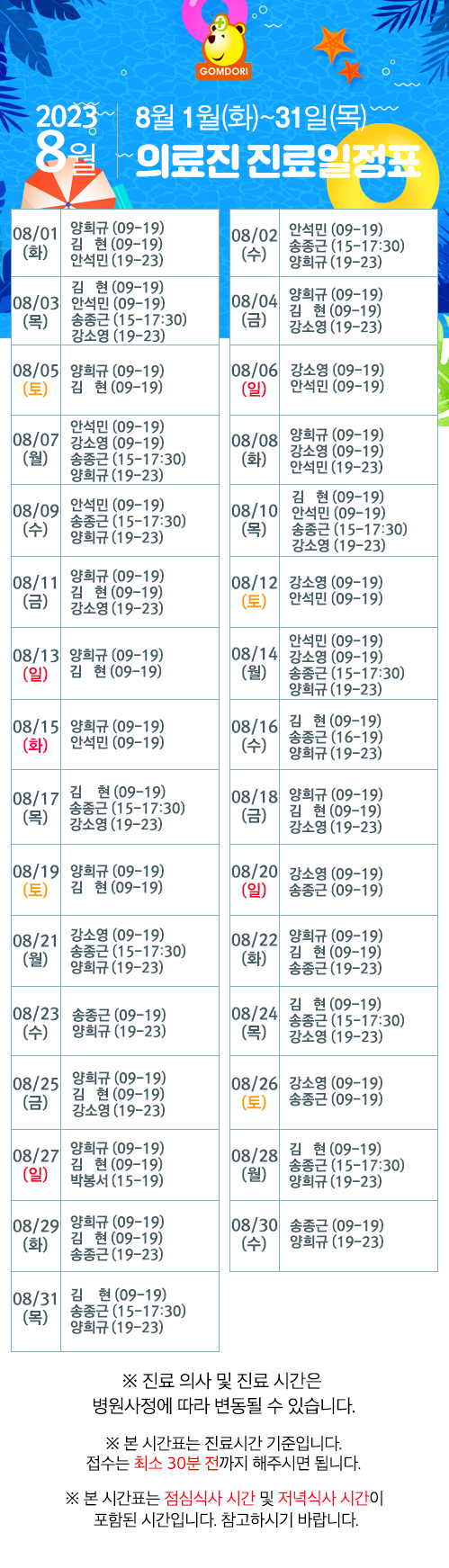 ※ 진료 의사 및 진료 시간은 병원사정에 따라 변동될 수 있습니다.