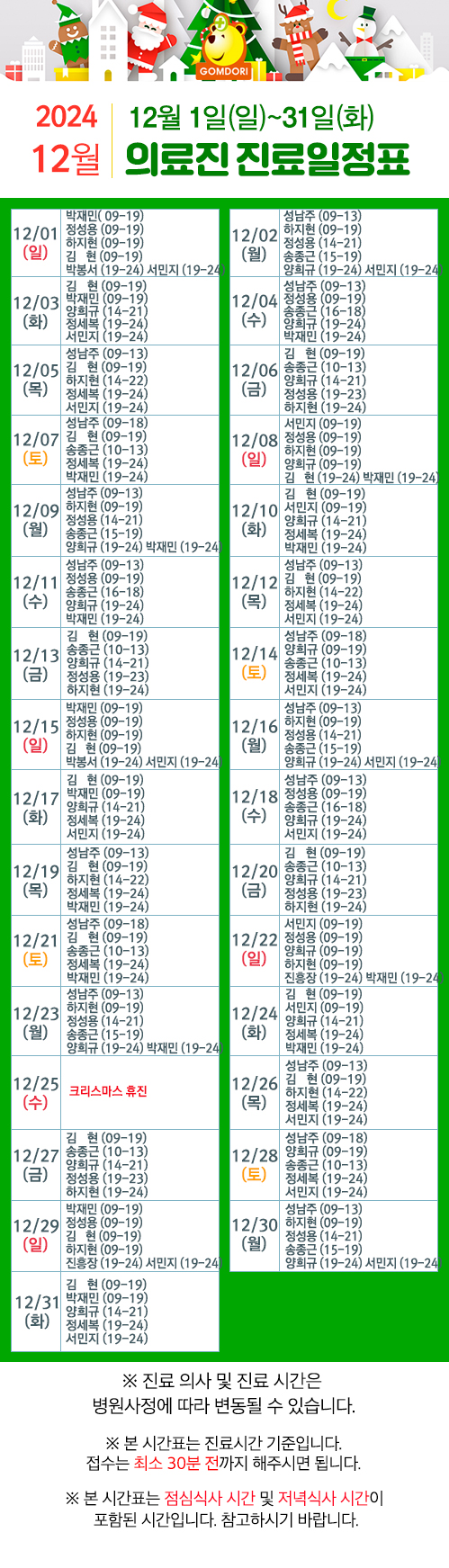 ※ 진료 의사 및 진료 시간은 병원사정에 따라 변동될 수 있습니다.