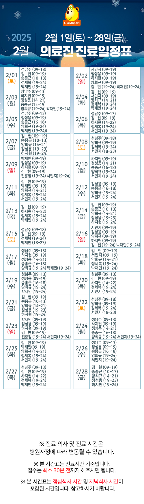 2월 전체 의료진 진료일정표