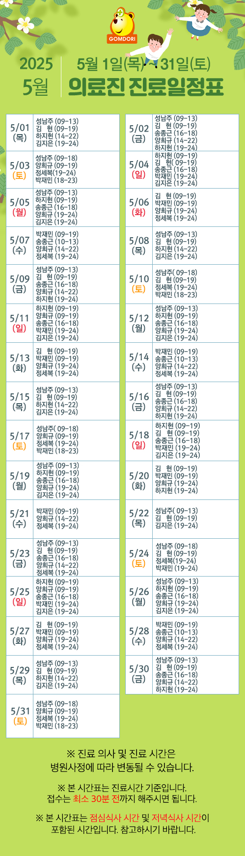 ※ 진료 의사 및 진료 시간은 병원사정에 따라 변동될 수 있습니다.