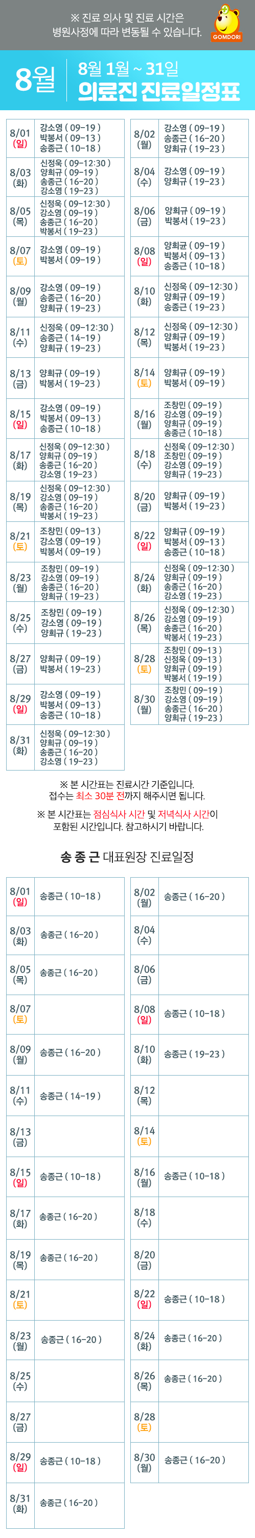 ※ 진료 의사 및 진료 시간은 병원사정에 따라 변동될 수 있습니다.