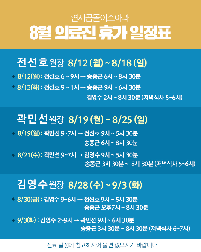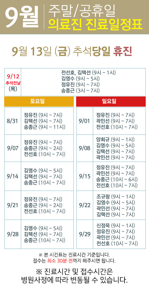 ※ 진료 의사 및 진료 시간은 병원사정에 따라 변동될 수 있습니다.