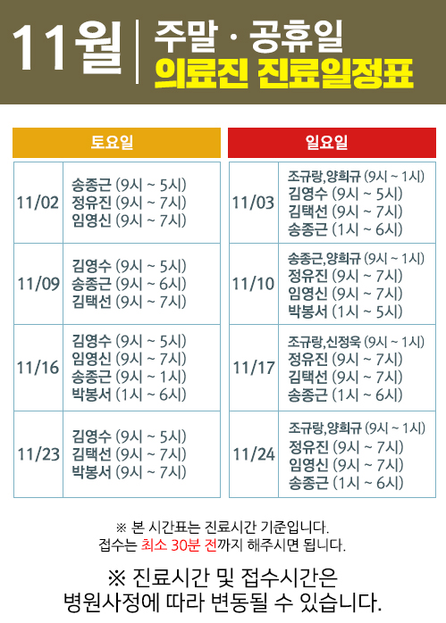 11월 주말/공휴일 의료진 일정표