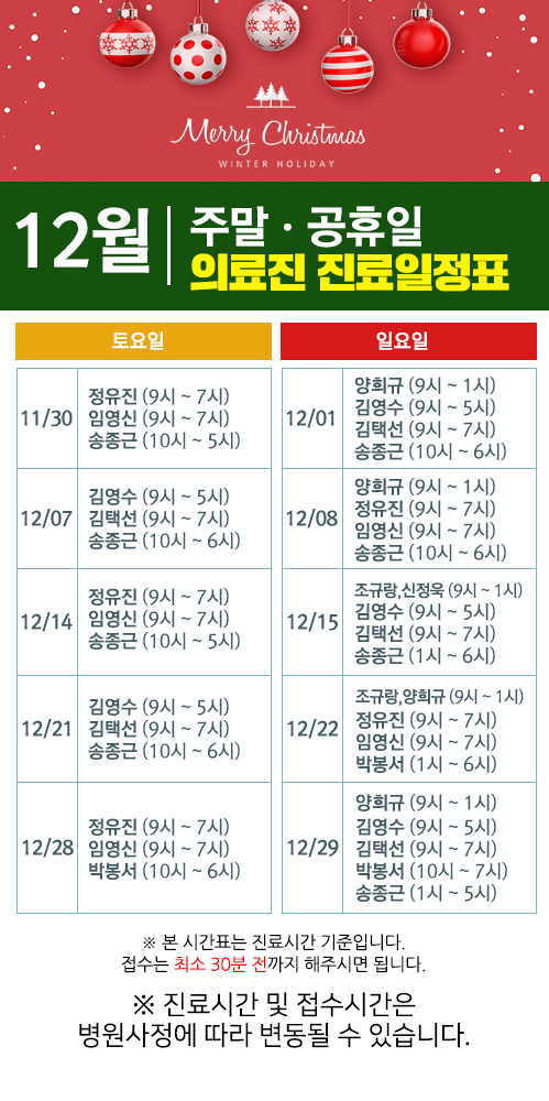 ※ 진료 의사 및 진료 시간은 병원사정에 따라 변동될 수 있습니다.