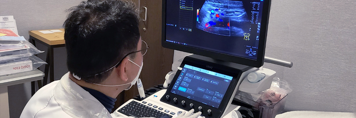 • 검사할 부위에 초음파가 잘 전달될 수 있도록 수용성 젤을 바르고 초음파가 발사되는 탐촉자를 밀착시켜 검사합니다. 초음파검사는 특별히 인체에 해가 없어 안전합니다.