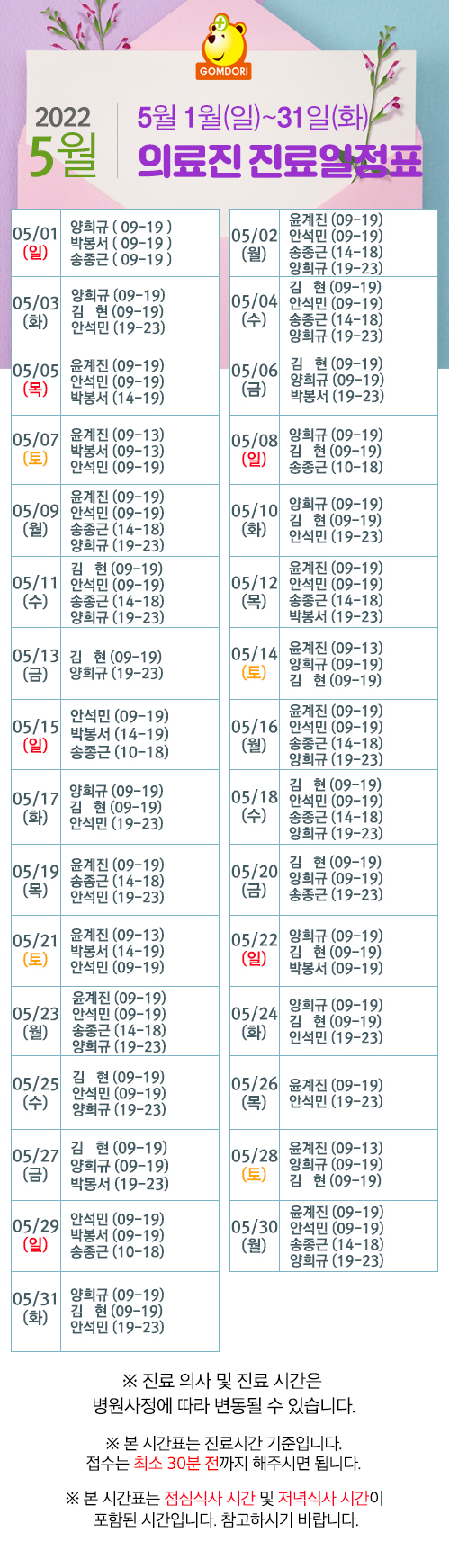 ※ 진료 의사 및 진료 시간은 병원사정에 따라 변동될 수 있습니다.