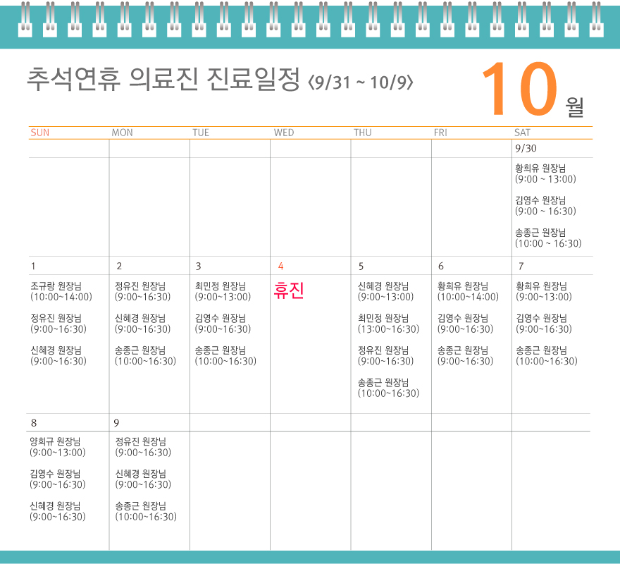 ※ 진료 의사 및 진료 시간은 병원사정에 따라 변동될 수 있습니다.